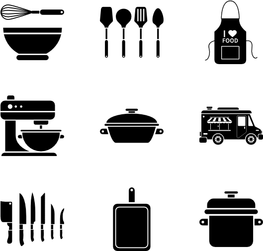 Related Cliparts With cooking utensils clipart black and white
