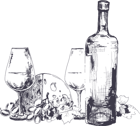 Related Cliparts With wine and cheese clipart black and white